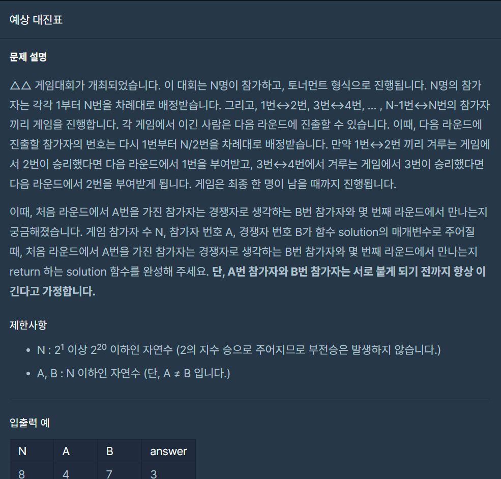 a,b 는 대진표상 서로 옆에 있어야 만날 것이다.