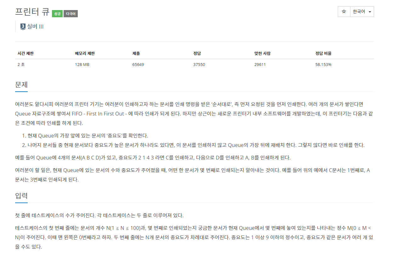 하지만 틀렸다고 나와서 큐를 연결리스트로 구현해 문제가 요구하는 것처럼 우선순위 큐를 구현했다.