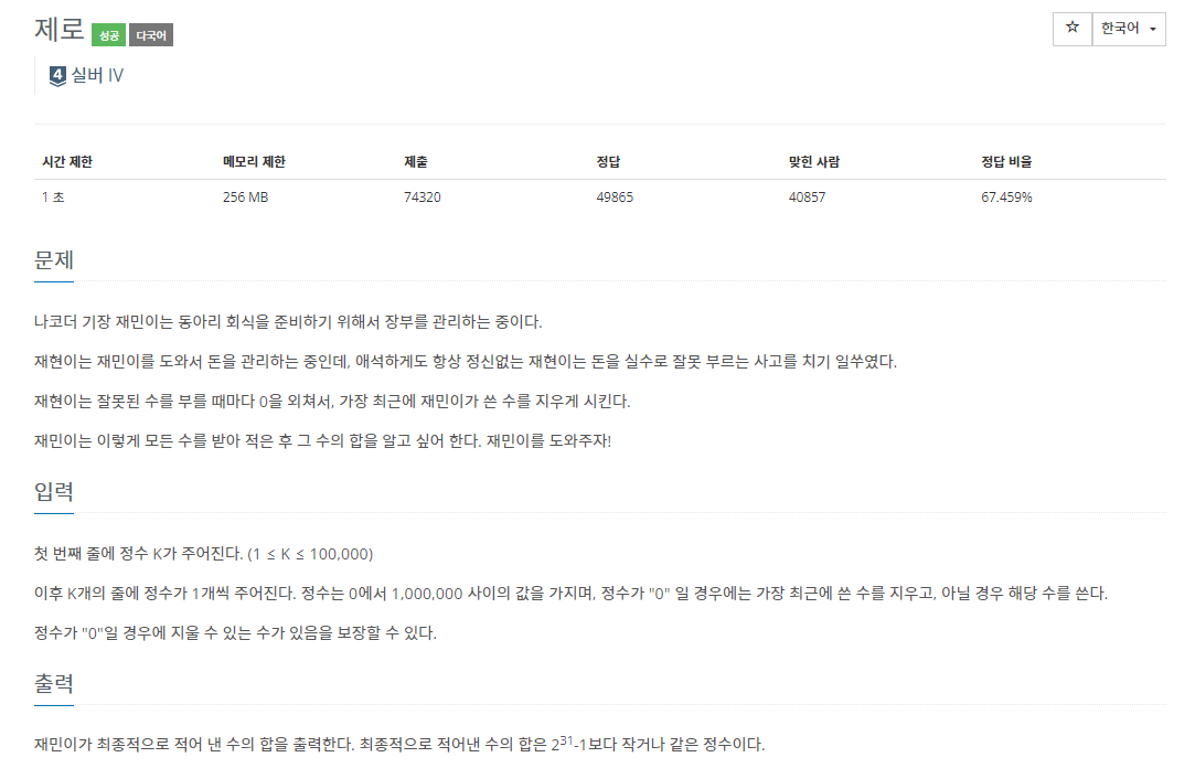 input이 0인지 판별하여 스택으로 구현해주면 된다.