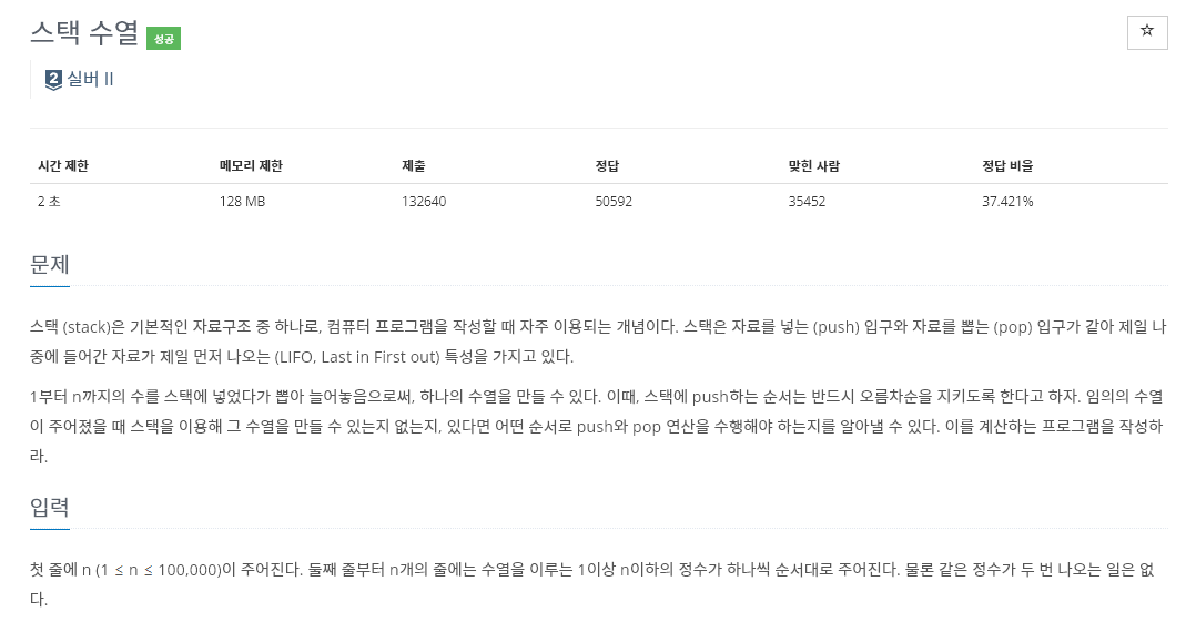 이 때 pop(-)해서 못찾으면 스택 수열이 아닌 것이다.