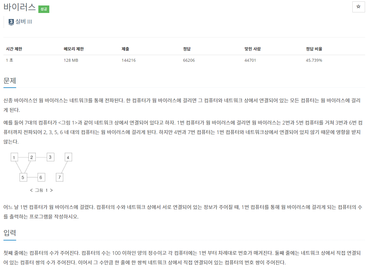 중요한건 1에서 부터 시작해서 만나게되는 노드의 수이기 때문에 1 자신을 제외해야한다.