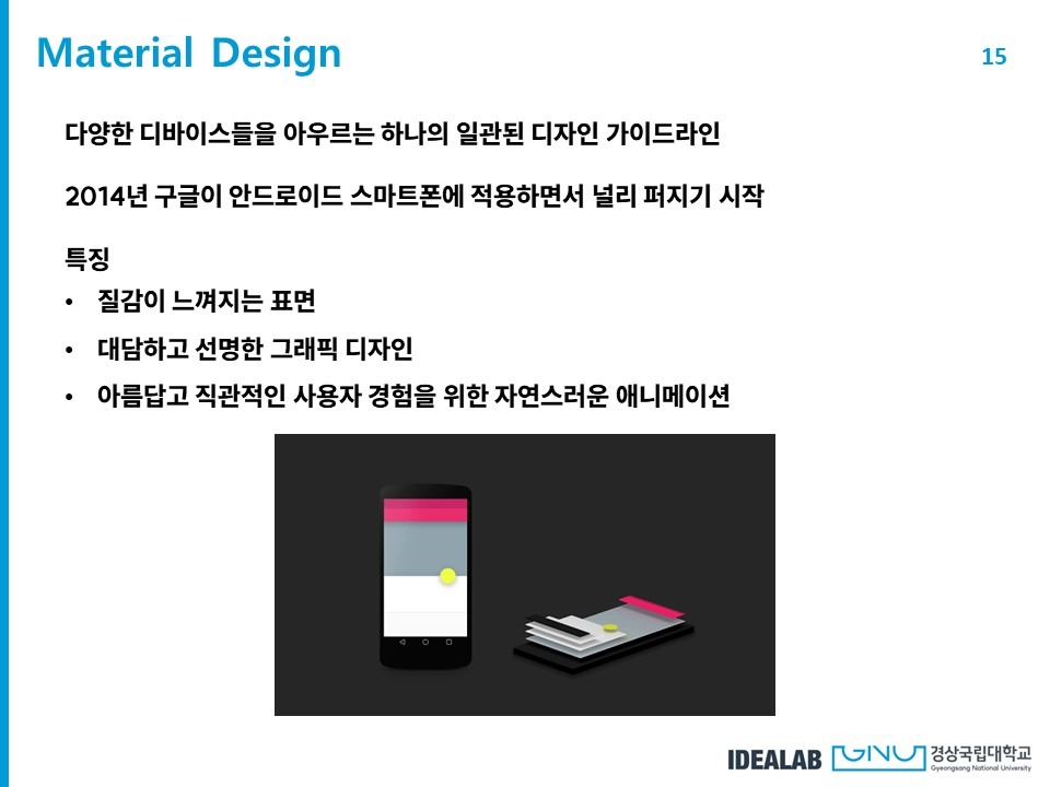 머터리얼 디자인은 다양한 디바이스들을 아우르는 하나의 일관된 디자인 가이드 라인입니다.