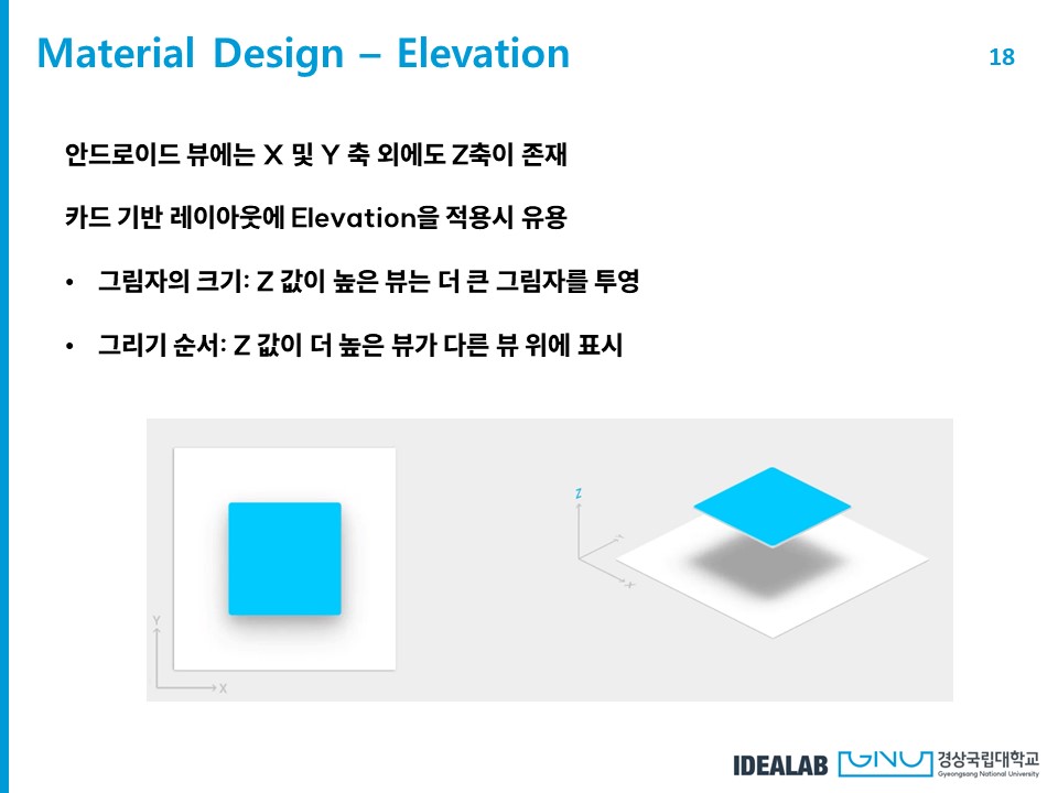 머터리얼 디자인은 카드 스톡기반 이기 때문에 Z축이 존재합니다.