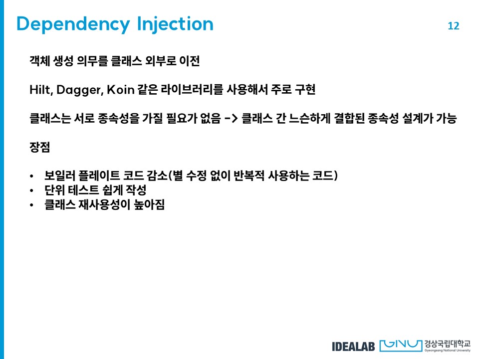 Hilt, Dagger, Koin 같은 라이브러리를 사용해서 주로 구현합니다.