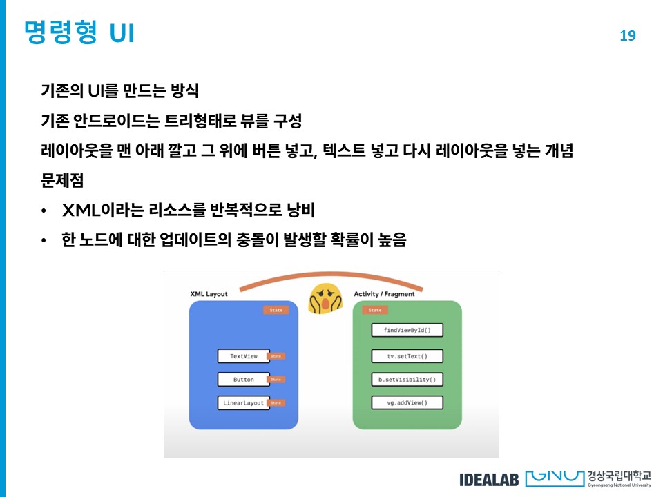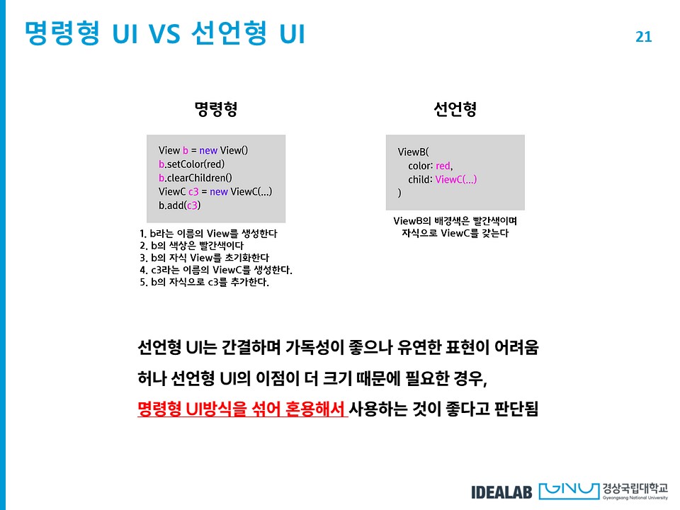 허나 유연성이 높은 명령형 UI방식을 사용해야 하는 경우도 존재할 수 있습니다.