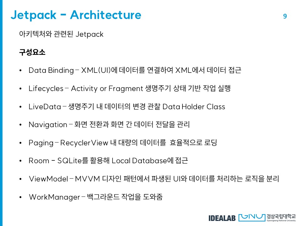 그 다음 jetpack 라이브러리에 대해 알아보겠습니다.