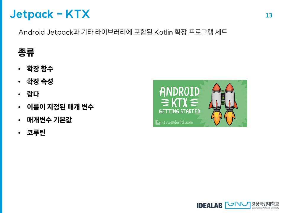 KTX는 기차가 아니고, 안드로이드 jetpack과 기타 라이브러리에 포함된 코틀린 확장 프로그램 세트입니다.